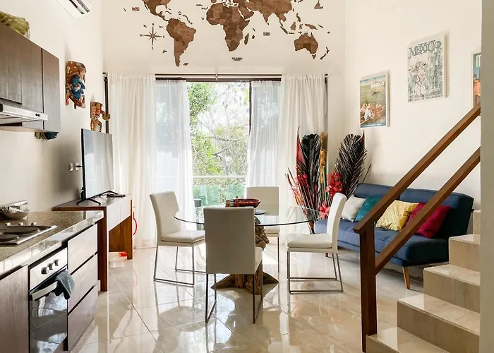 Obiekt noclegowy oferuje dostęp do wyposażonej kuchni z kuchenką mikrofalową, lodówką i przyborami kuchennymi. Takie popularne restauracje jak Restaurante Bejuco i Ki'Kil są w odległosci 5-minutowego spaceru od obiektu noclegowego. Najbliższe lotnisko to Playa del Carmen, 65 km od Cave Apartments Mexico 7. Obiekt noclegowy oferuje dostęp do jacuzzi, parku wodnego i słonecznego tarasu, a także taras z widokiem na ogród.